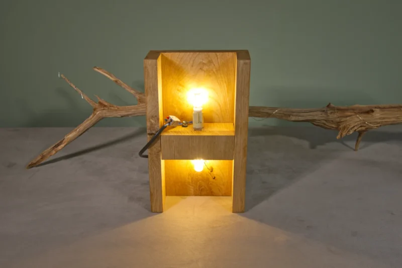 Deze lamp maakt deel uit van de Quercus-lijn. Quercus — Latijn voor eik — is een lijn waarbij het hout zelf de hoofdrol speelt. Het ontwerp staat in dienst van het materiaal, niet andersom. De minimalistische vormgeving is bewust gekozen om de natuurlijke tekening, de warme tinten en het karakter van het eikenhout volledig tot hun recht te laten komen. De strakke lijnen en het massieve eikenhout geven deze lamp een rustige uitstraling die past bij zowel moderne als klassieke interieurs. Overdag een sculpturaal object, ’s avonds een bron van warm licht.Quercus Alta