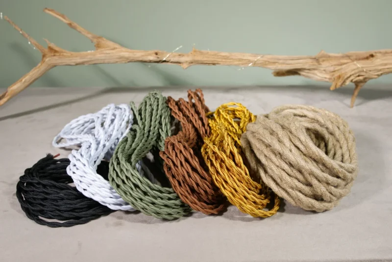 Een lamp is pas af als elk detail klopt. Als je de lamp wilt aansluiten op een stopcontact, dan zal je een kabel nodig hebben die zichtbaar zal zijn. Dan kan je je lamp voorzien van een stijlvolle textielkabel. Niet zomaar een snoer, maar een bewuste keuze die het ontwerp compleet maakt. Textielkabels zijn gewoon stroomkabels zoals je gewent bent, maar dan met een jasje. Mijn textielkabels zijn verkrijgbaar in zes kleuren, elk met een eigen uitstraling. Je bestelt het per cm, dus je krijgt precies wat je nodig hebt. De kabel wordt geleverd met een standaard (platte) euro-stekker. Je hebt de keuze uit wit en zwart.Wil je hem op een specifieke lamp in je bestelling laten bevestigen, laat het weten in het notitieveld.